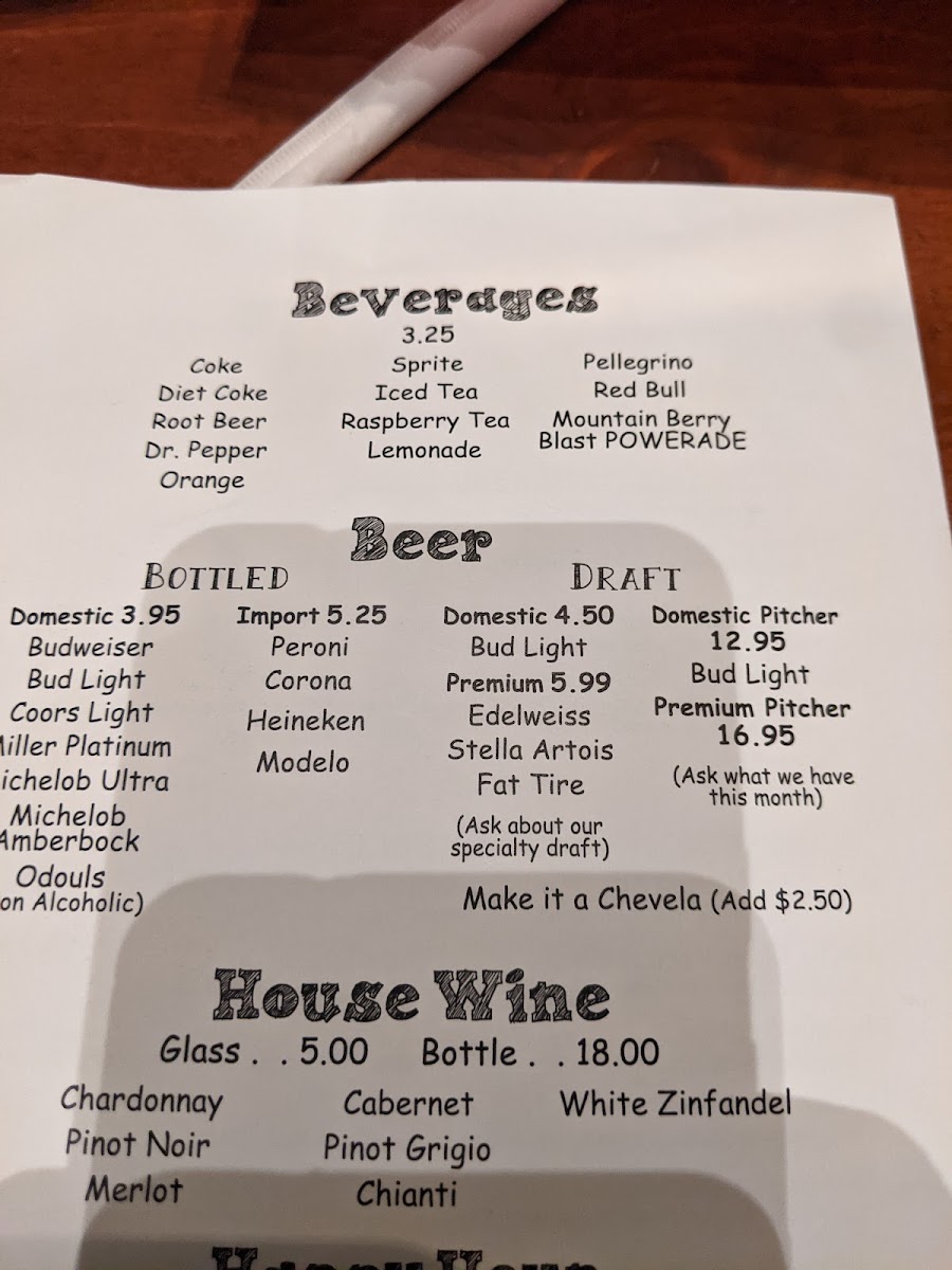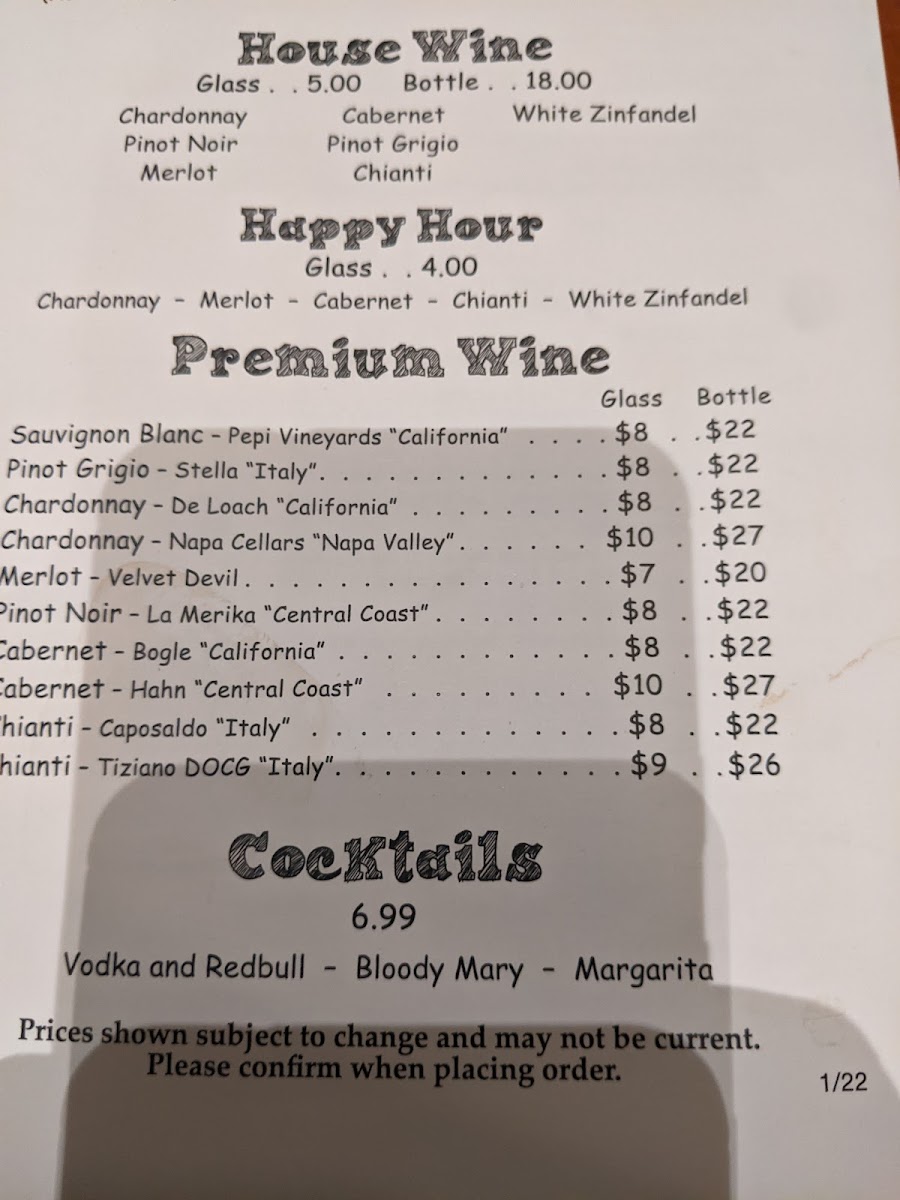 Expect traditional staples like pepperoni and vegetarian pizzas, creamy Alfredo pasta, and house specialties such as eggplant parmesan or shrimp scampi. These dishes meld well with the inviting, homestyle atmosphere, making them ideal for casual meals with family or friends. From flavorful appetizers like spinach artichoke dip to indulgent desserts such as chocolate cake, the menu complements a laid-back experience where the focus is on enjoying good food in thoughtful portions.